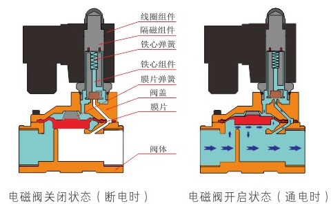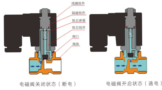 原理:海口睿达高校职业规划有限公司直动式电磁阀分常闭型和常开型两种。常闭型电磁阀断电时为关闭状态,线圈通电时产生电磁力,动铁芯跟静铁芯吸合,电磁阀阀口打开,介质(流体)通过;当电磁阀线圈断电时电磁阀消失,在弹簧的作用力下,电磁阀动铁芯复位,阀口关闭,介质(流体)不同,电磁阀呈关闭状态。常开型与之相反。
